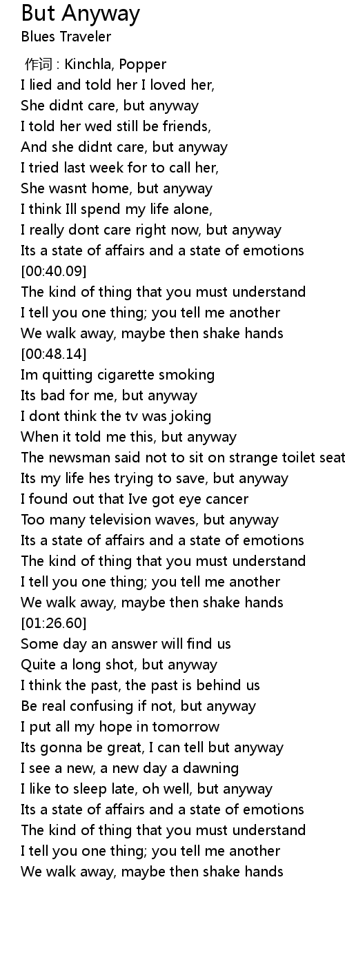 | [00:38.33] | Its a state of affairs and a state of emotions |