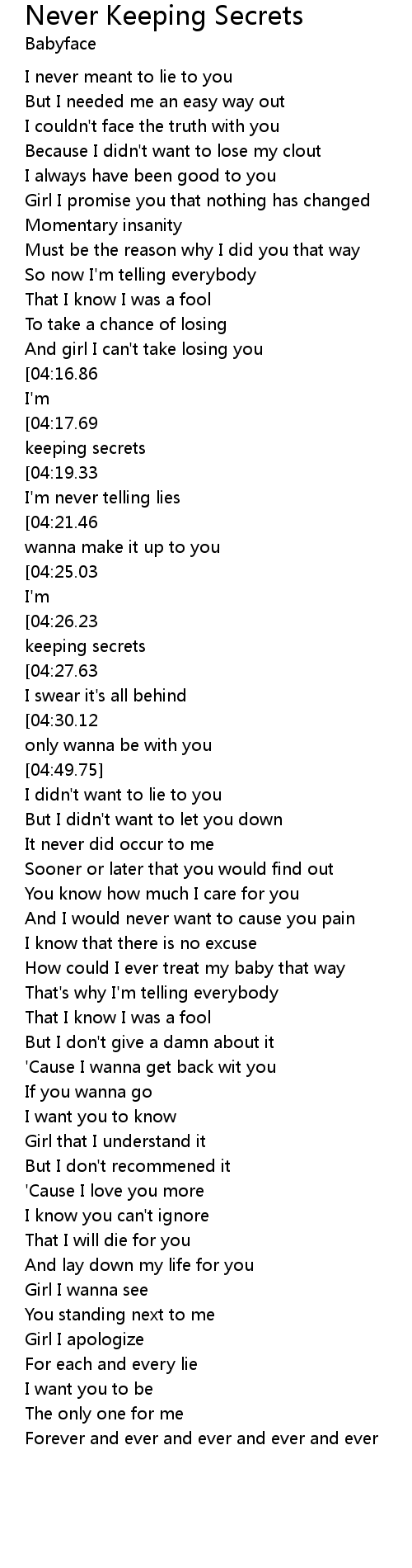Never keeping secrets |