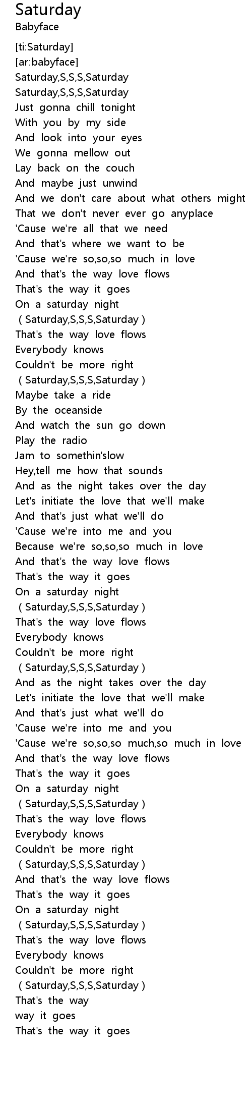 | [02:58.44] | Saturday, S, S, S, Saturday |