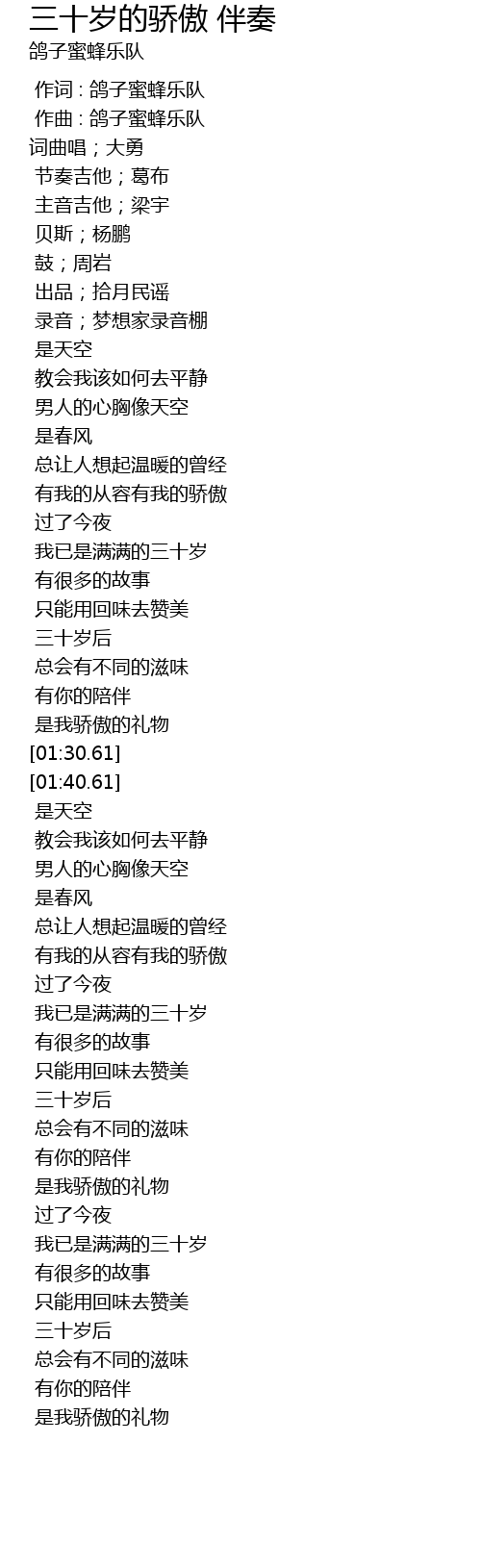 | [02:19.61] | wǒ yǐ shì mǎn mǎn de sān shí suì |