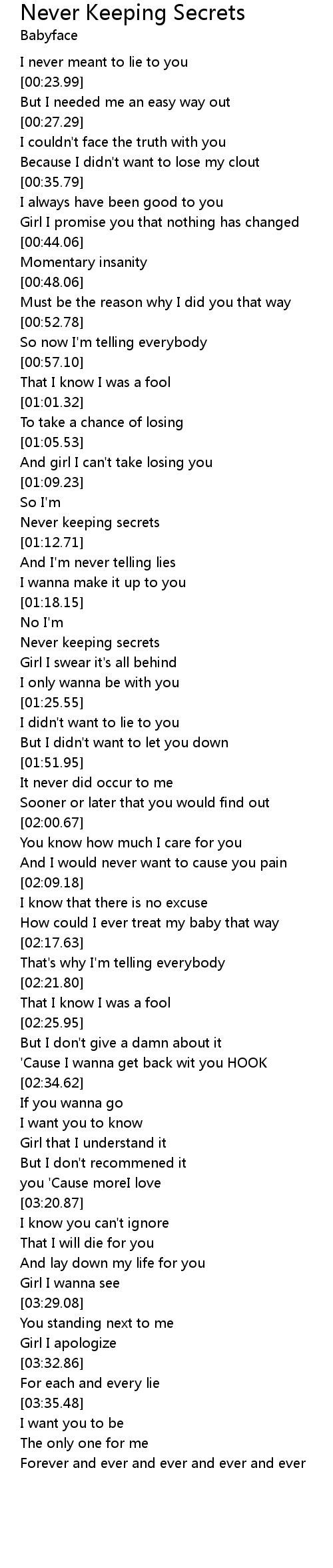 Never keeping secrets |