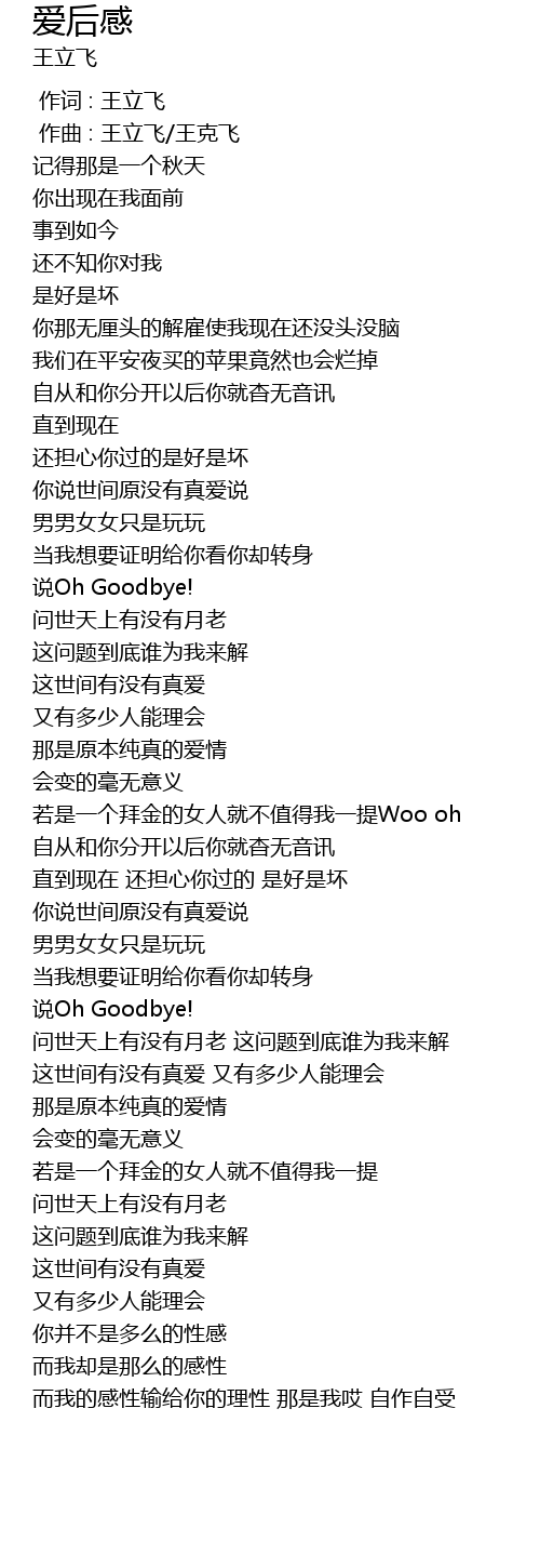| [00:00.000] | 作词 : 王立飞 |