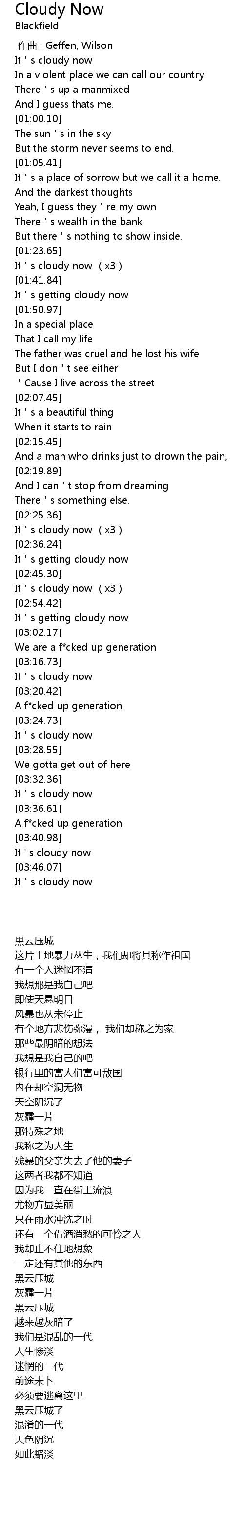 | [03:26.61] | It s cloudy now |