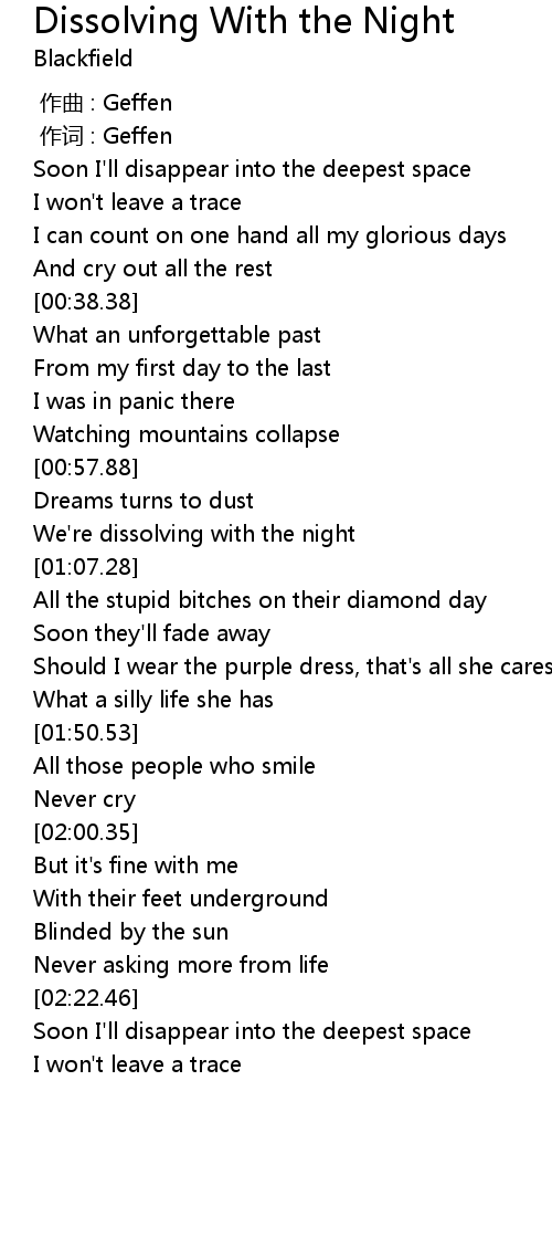 | [01:04.17] | We're dissolving with the night |