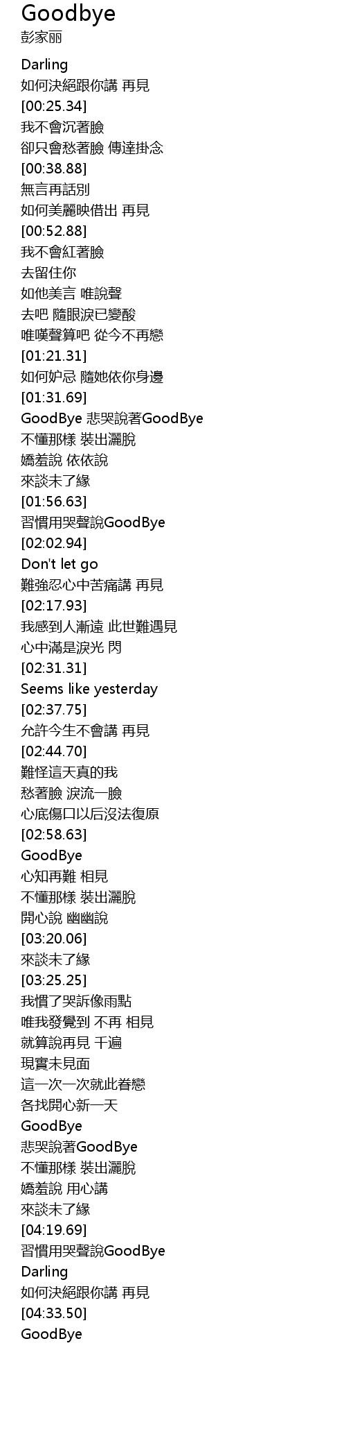 [01:32.75] GoodBye 悲哭說著GoodBye