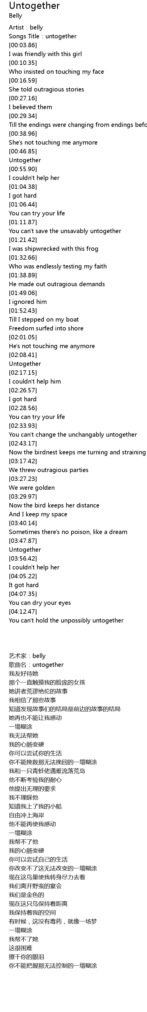 | [04:17.96] | You can' t hold the unpossibly untogether |
