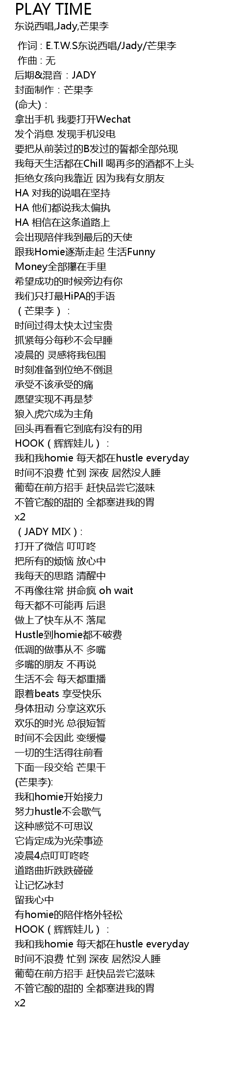 | [00:00.000] | 作词 : E.T.W.S东说西唱/Jady/芒果李 |