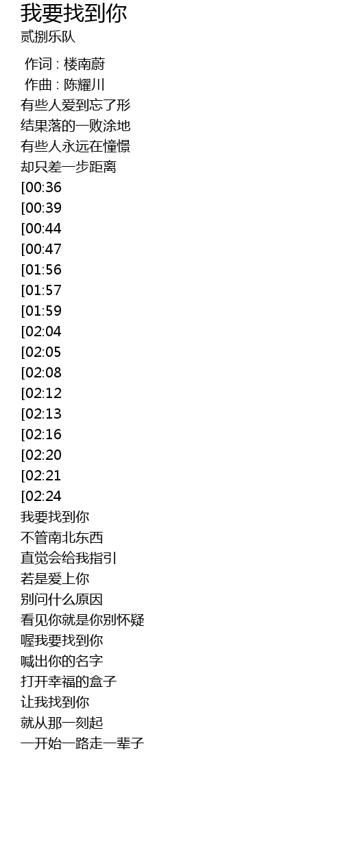 | [02:59.5][02:12][01:08] | 喔我要找到你 |