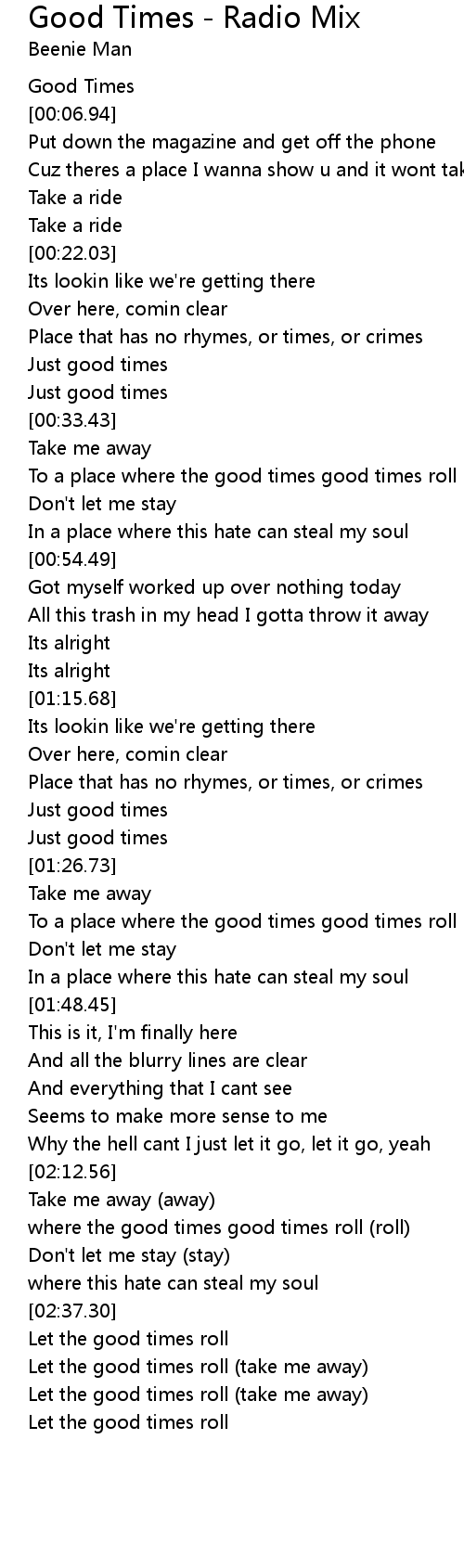 Good Times - Radio Mix Lyrics