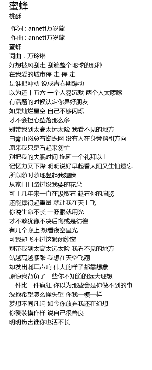| [00:00.000] | zuò cí : annett wàn suì yé |
