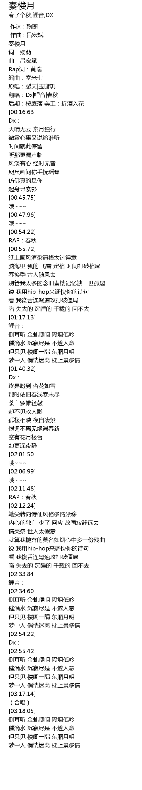 | [00:12.40] | 翻唱:Dx|鲤音|春秋 |