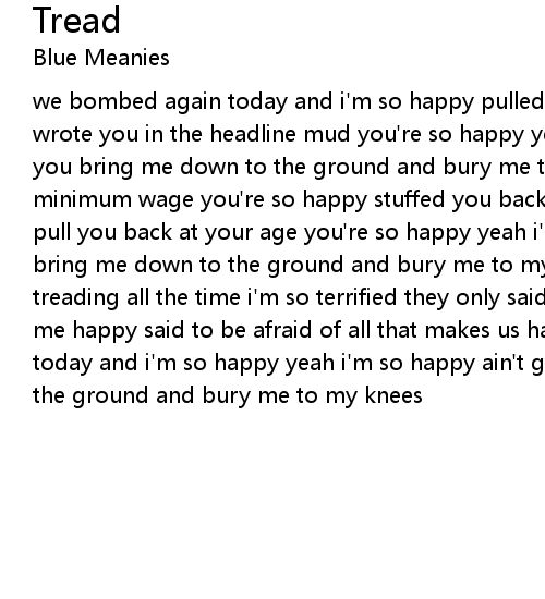 we bombed again today and i'm so happy pulled another plug yeah i'm so happy wrote you in the headline mud you're so happy yeah i'm so happy ain't gonna let you bring me down to the ground and bury me to my knees pissed in a cup for minimum wage you're so happy stuffed you back inside your cage you're so happy pull you back at your age you're so happy yeah i'm so happy ain't gonna let you bring me down to the ground and bury me to my knees i'm treading on sunshine i'm treading all the time i'm so terrified they only said the same things that make me happy said to be afraid of all that makes us happy and they bombed again today and i'm so happy yeah i'm so happy ain't gonna let them bring me down to the ground and bury me to my knees