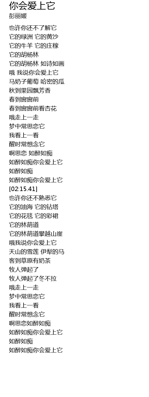 | [03:13.70] | 天山的雪莲 伊犁的马 |