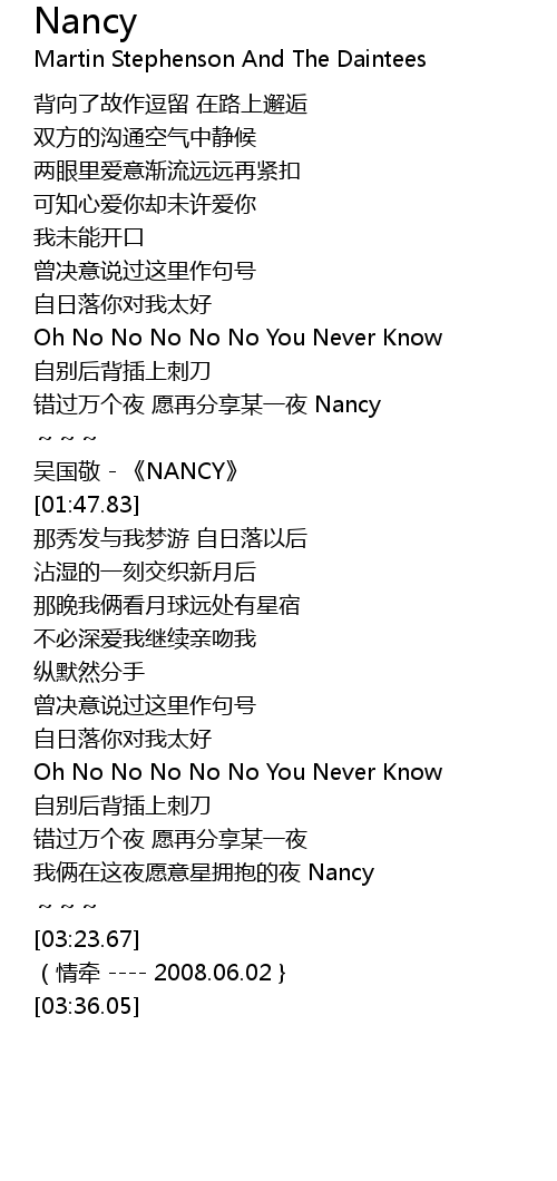 | [01:39.55] | 吴国敬 - 《NANCY》 |