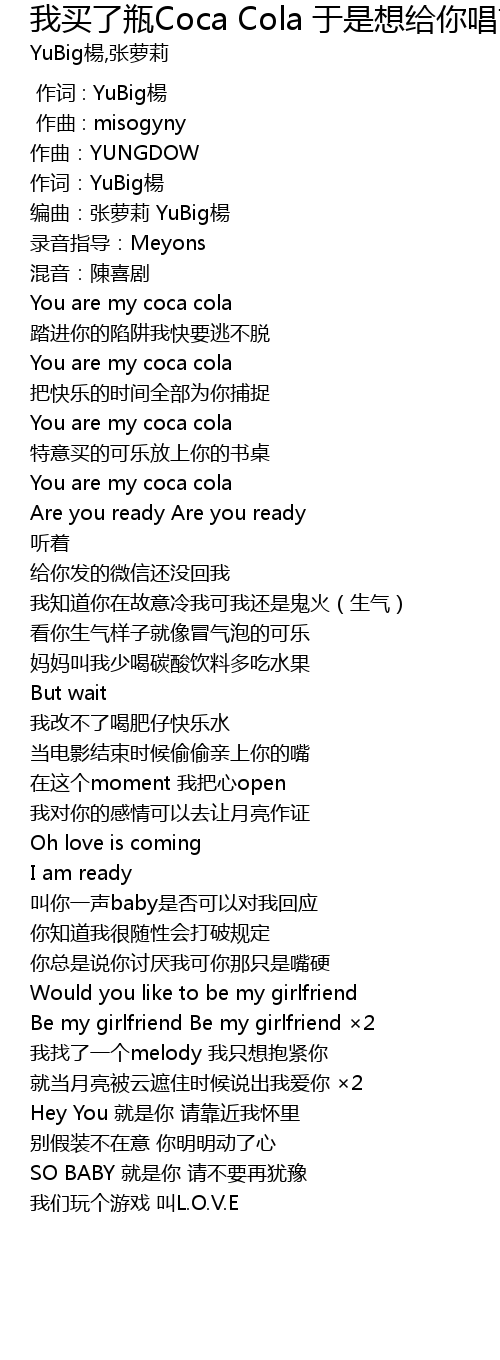 | [00:08.192] | biān qǔ: zhāng luó lì YuBig yáng |