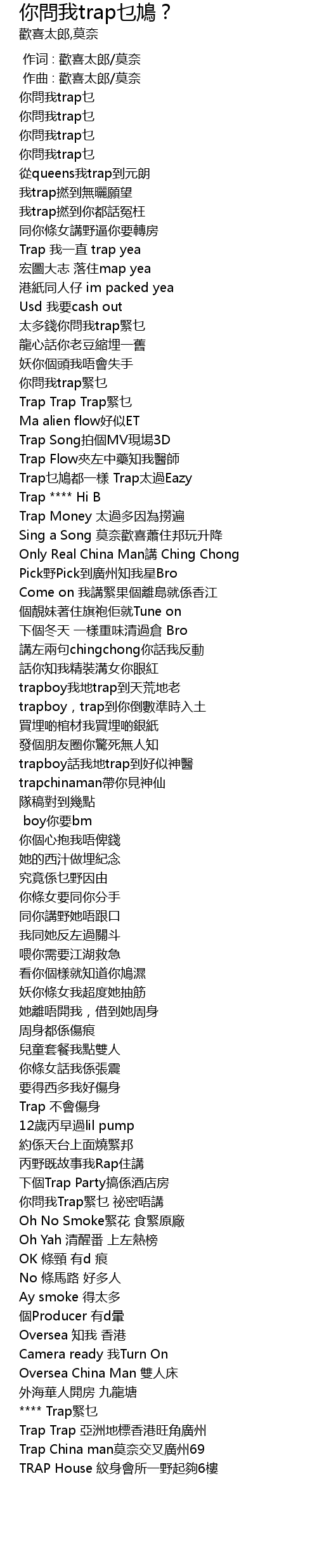 | [00:53.683] | Trap乜鳩都一樣 Trap太過Eazy |