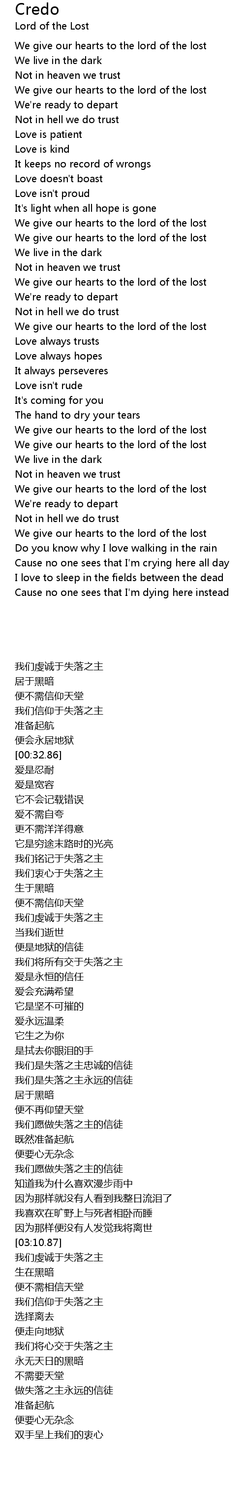 We give our hearts to the lord of the lost |