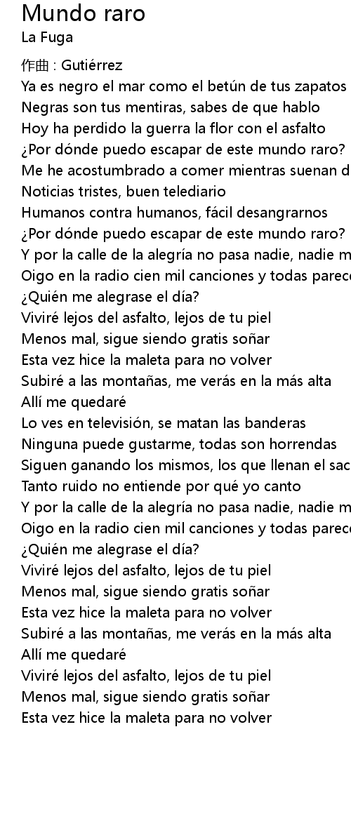 | Song | Mundo raro |