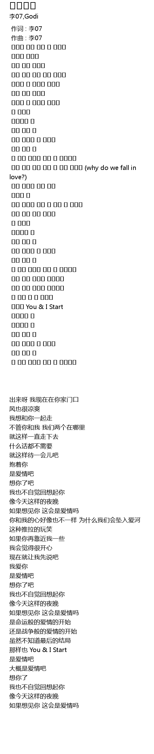 | [00:13.430] | 나올래 지금 너의 집 앞이야 |