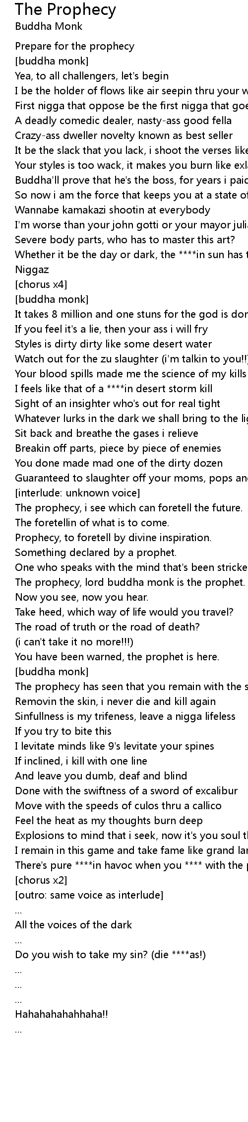 The prophecy, lord buddha monk is the prophet. |