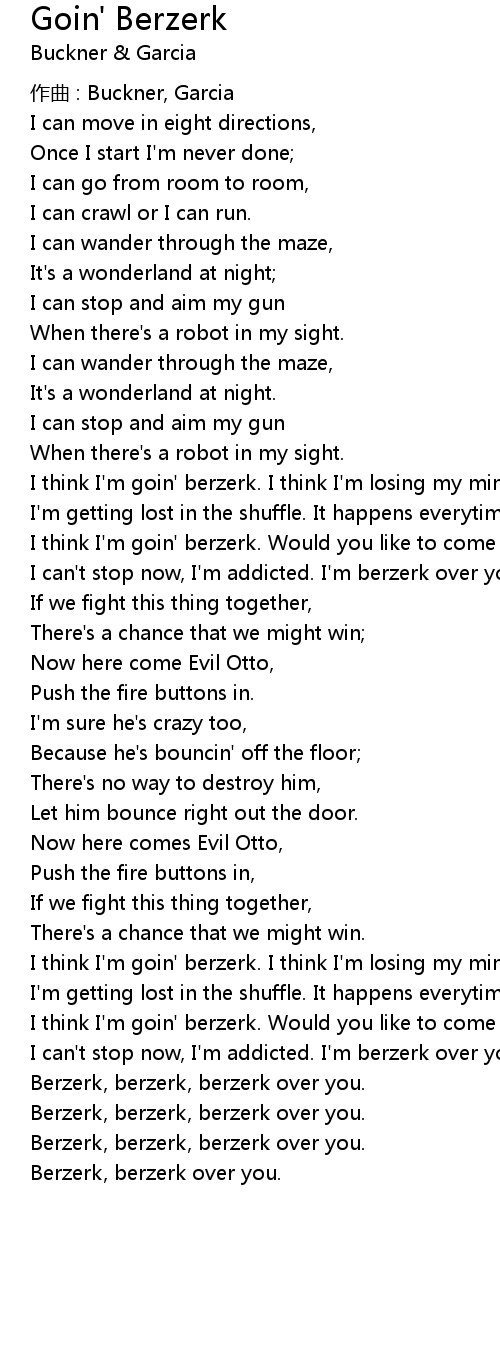 | I think I'm goin' berzerk. Would you like to come too? | |
