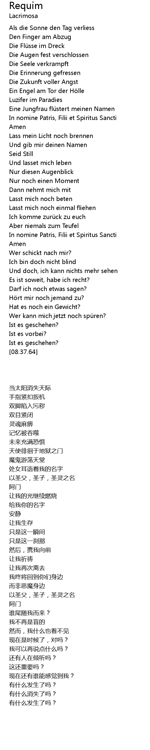 | [03:38.71] | Eine Jungfrau flü stert meinen Namen |