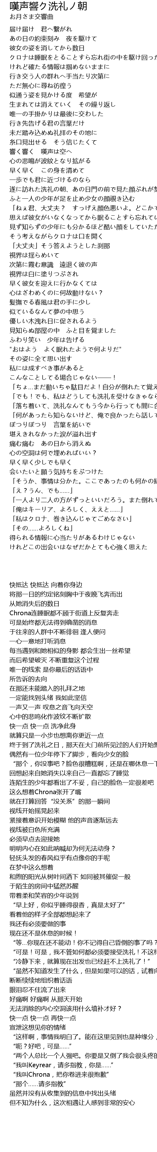 | [00:23.968] | クロナは睡眠をとることすら忘れ街の中を駆け回った |