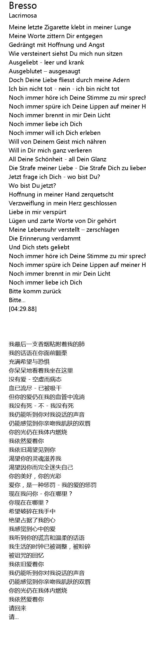 | [02:15.46] | Die Strafe meiner Liebe Die Strafe Dich zu lieben |