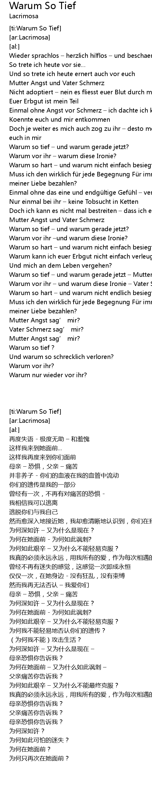 | [06:48.99] | Warum vor ihr – und warum diese Ironie – Vater Schmerz sag’ mir? |