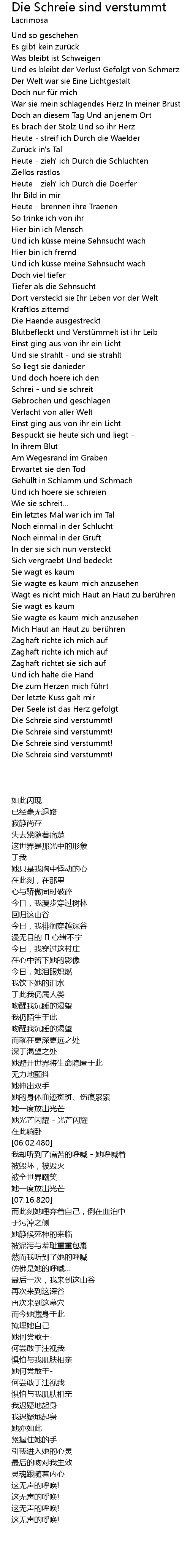 | [04:52.530] | Blutbefleckt und Verstü mmelt ist ihr Leib |