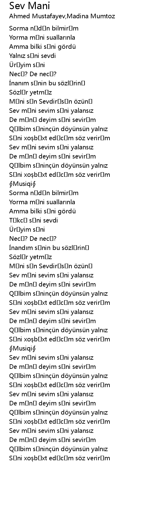 | [03:10.46] | De mənə deyim səni sevirəm |