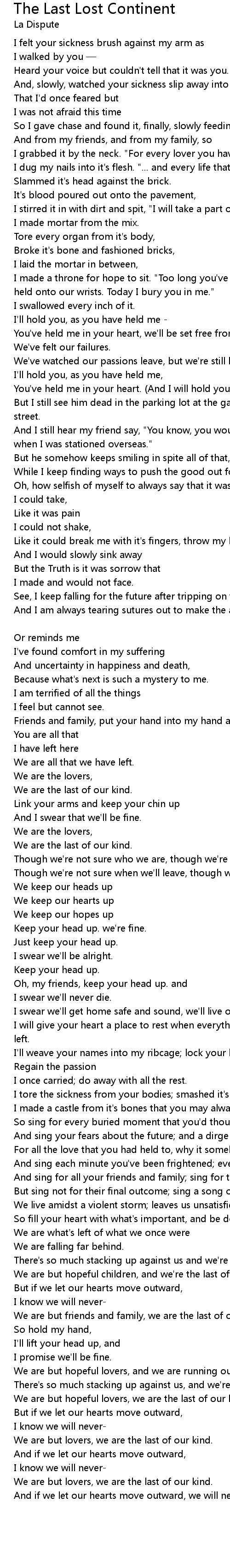 | I made a throne for hope to sit. " Too long you' ve torn us into pieces, Firmly held onto our wrists. Today I bury you in me." | |