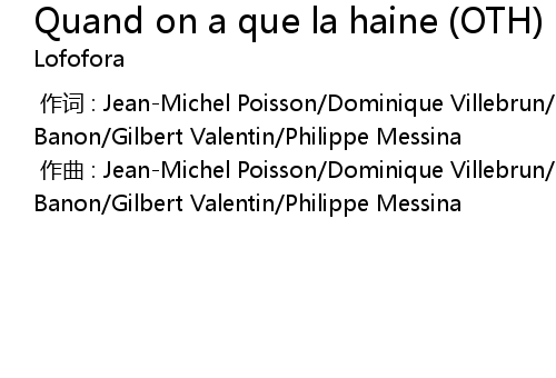 | [00:00.000] | zuo qu : JeanMichel Poisson Dominique Villebrun Didier Banon Gilbert Valentin Philippe Messina |