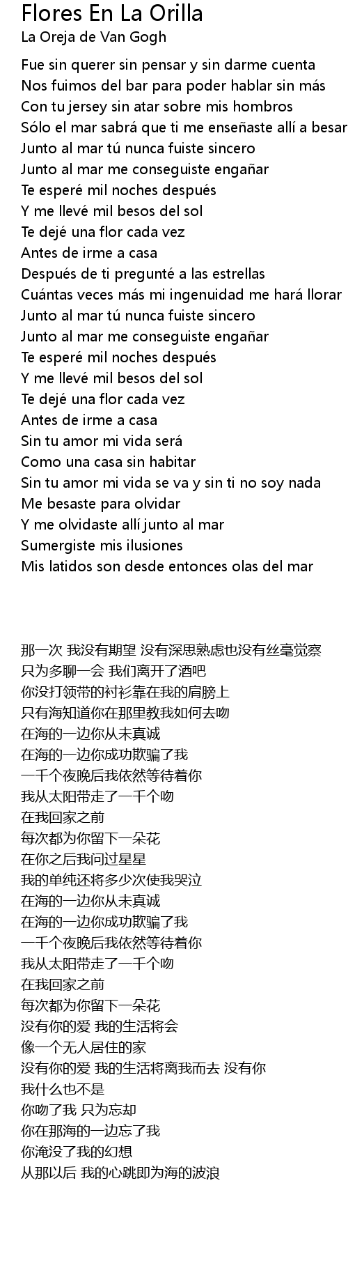 | [01:42.34] | Junto al mar tú nunca fuiste sincero |
