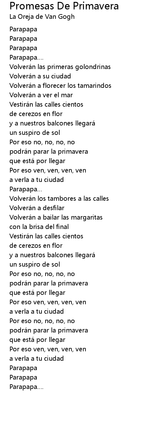 | Song | Promesas De Primavera |