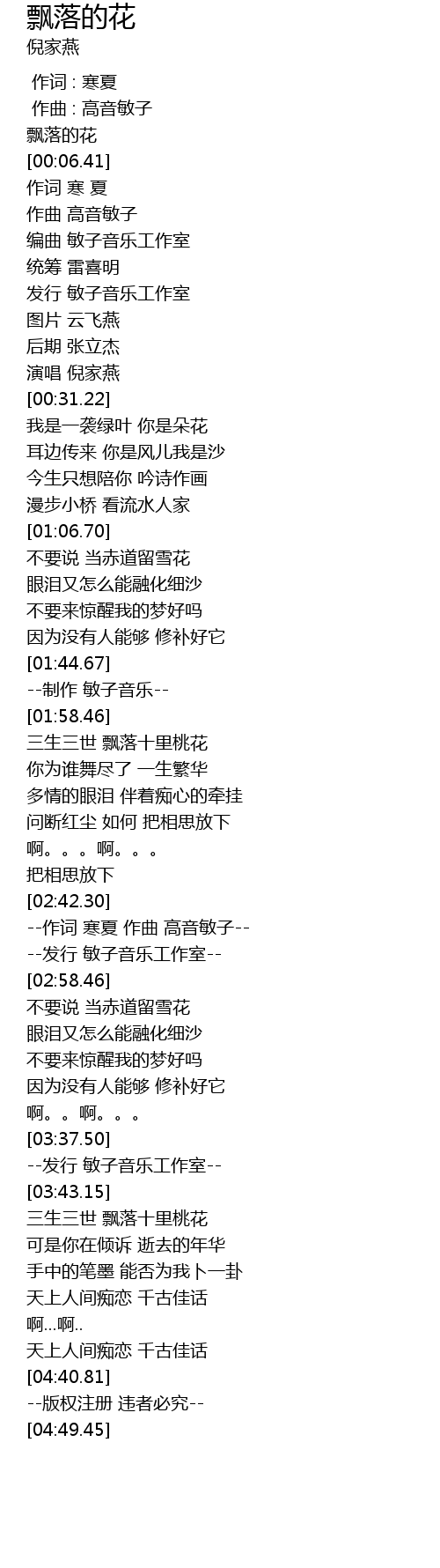 | [03:40.68] | --发行 敏子音乐工作室-- |