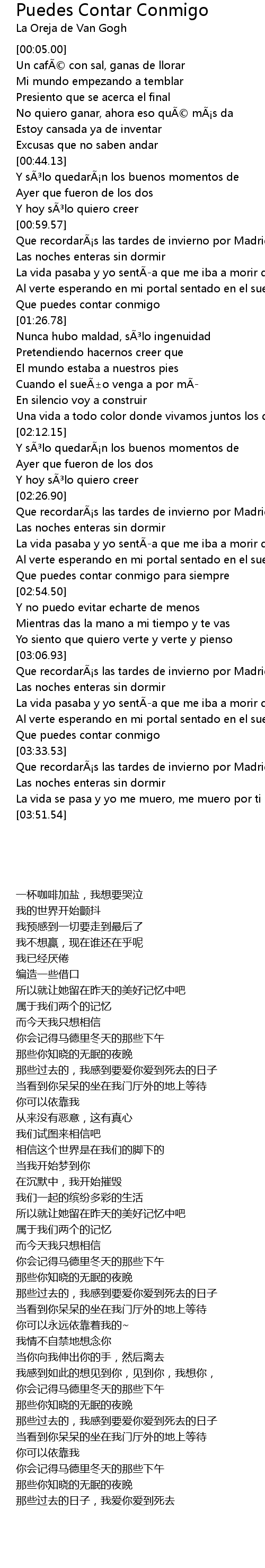 | [00:06.57] | Un caf con sal, ganas de llorar |