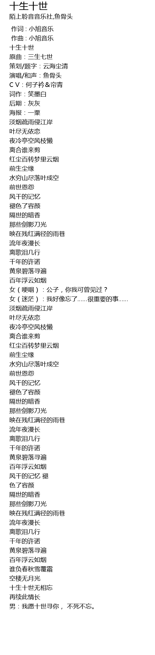 | [04:11.830] | 男:我愿十世寻你, 不死不忘。 |
