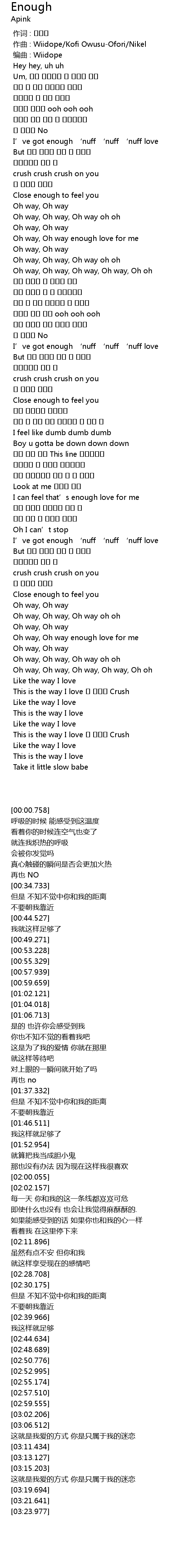 | [00:34.733] | I' ve got enough ' nuff ' nuff ' nuff love |