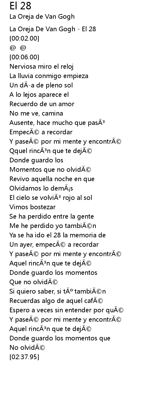 | [00:00.00] | La Oreja De Van Gogh - El 28 |