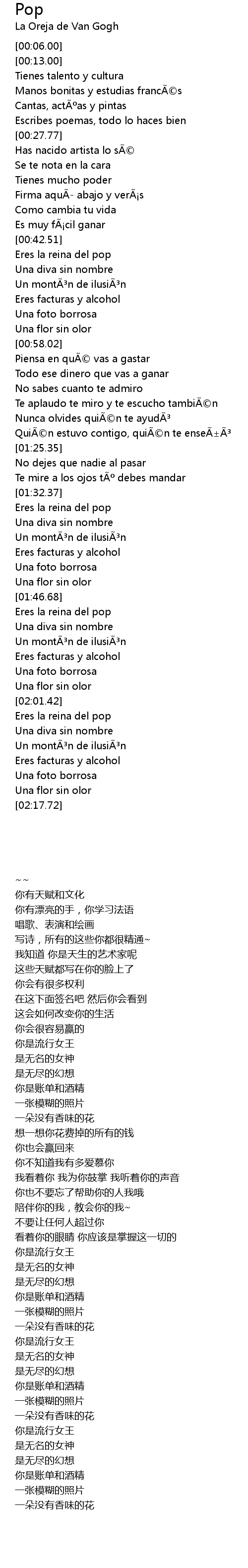 | [00:23.68] | Escribes poemas, todo lo haces bien |