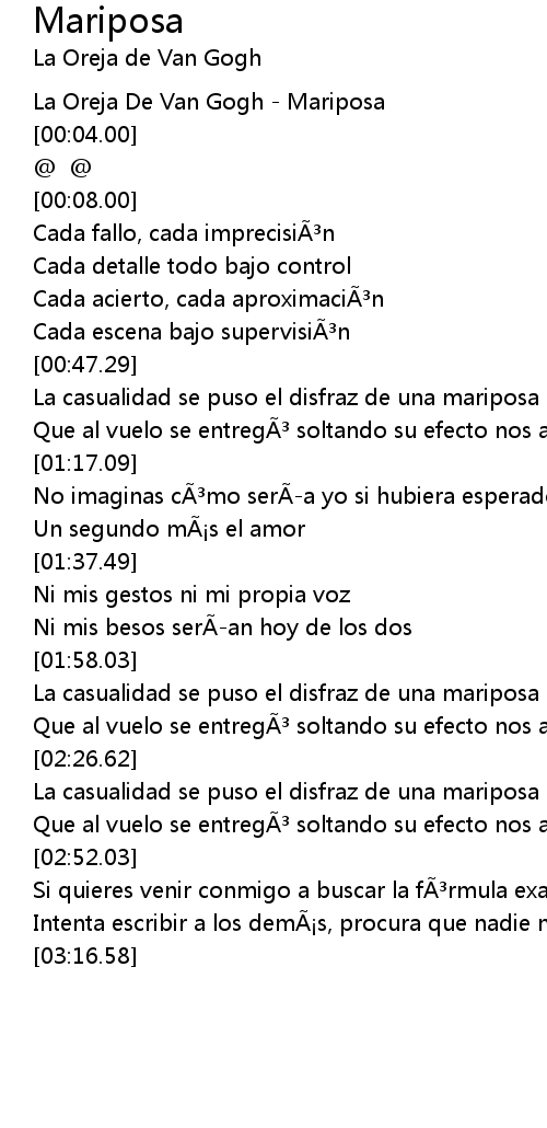 | [00:02.00] | La Oreja De Van Gogh Mariposa |