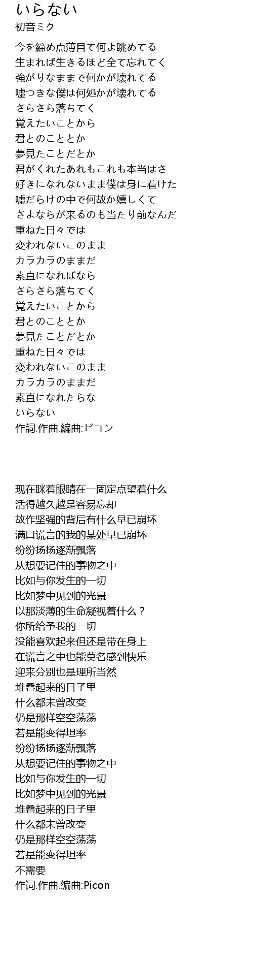 | [03:28.400] | 作詞.作曲.編曲:ピコン |