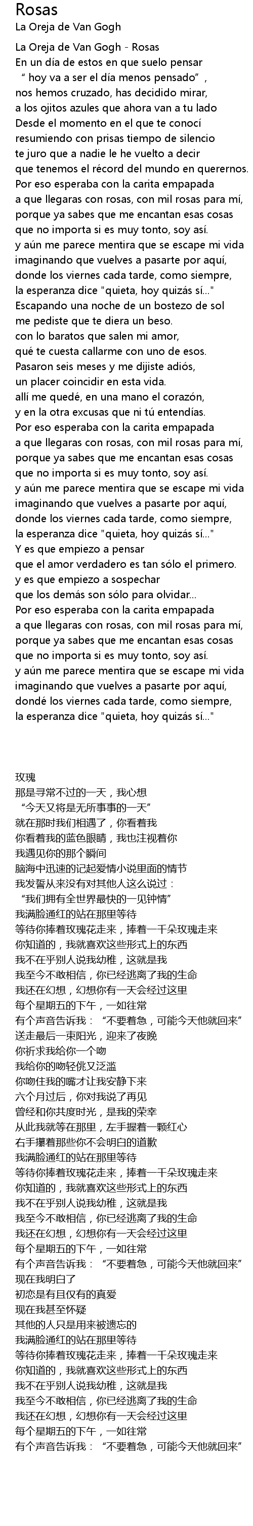 | [00:06.40] | La Oreja de Van Gogh Rosas |
