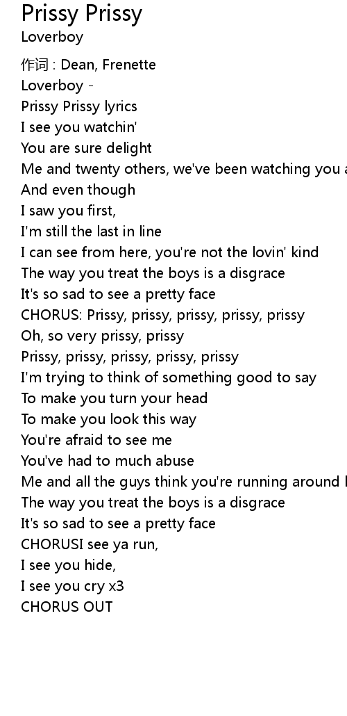 | CHORUS: Prissy, prissy, prissy, prissy, prissy | |