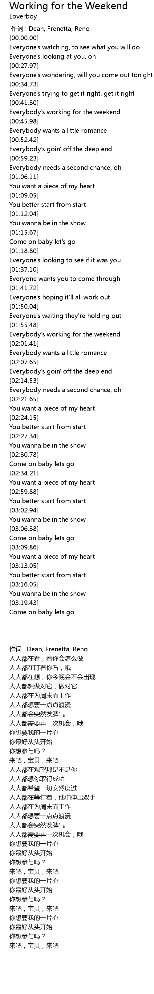 | [00:00.00] | 作词 : Dean, Frenetta, Reno |