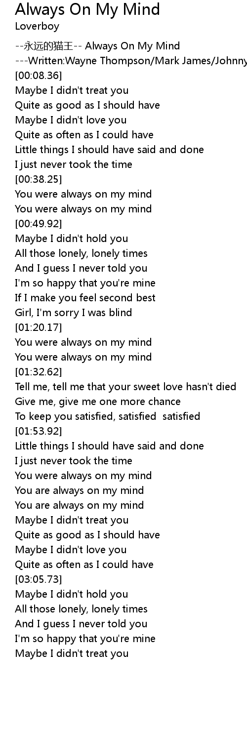 | [00:05.49] | yong yuan de mao wang Always On My Mind |