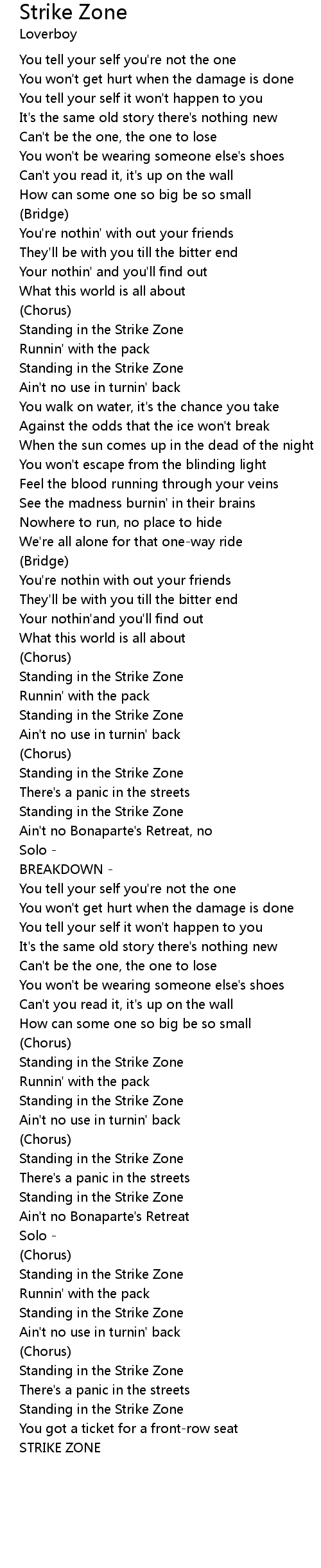 Strike Zone Lyrics