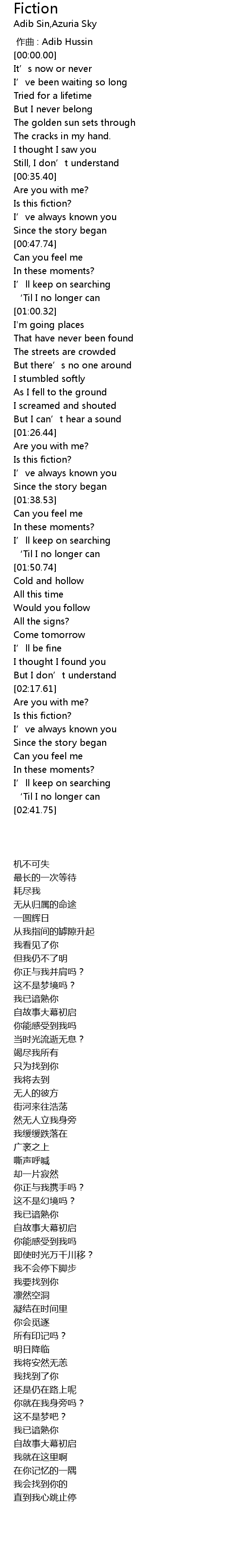 | [00:39.89] | Is this fiction? |