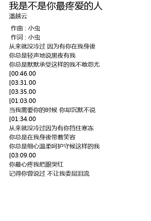 [03:00.00][03:31.00][00:54.00][01:12.00][02:41.00] 我是不是你最疼爱的人